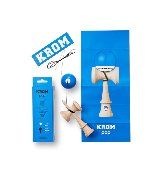 Realizată din lemn de fag, cu un strat KROM LOL sticky pentru extra aderență, forma versatilă CK shape și o bilă (tama) ușor de urmărit în aer – POP este o kendama cu care oricine poate începe să joace și să se distreze, dar care rămâne competitivă și pentru trick-uri mai avansate.